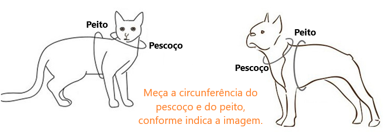 - P: Pescoço: 42-50cm | Peito: 47-61cm