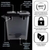 A tampa com sistema de vedação hermética evita qualquer contato da ração com o ambiente externo, preservando aroma, sabor e crocância. Ideal para quem compra ração em grande quantidade e quer evitar desperdícios.